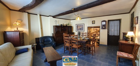 floor : lounge with a fireplace and a woodstove « Gaudin », fitted kitchen,